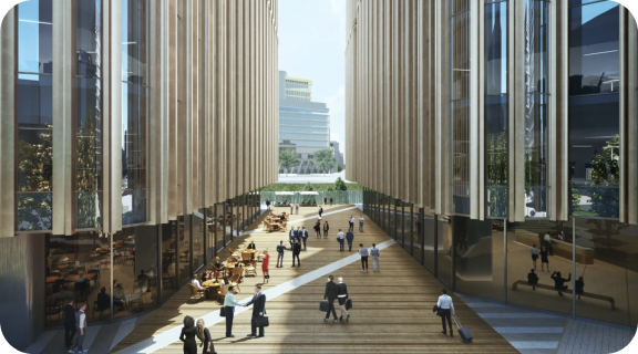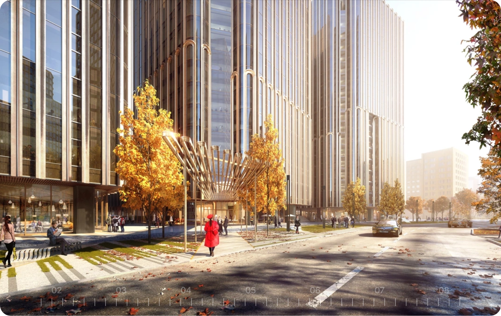 SLAVA и соседняя «Белая площадь» образуют район, который объединяет в себе множество функциональных точек и эмоциональный комфорт. В социальном контексте легко сочетаются разнообразные вкусы и языки, формируя микрокультуру, открытую для позитивного воздействия и трендов со всего мира.